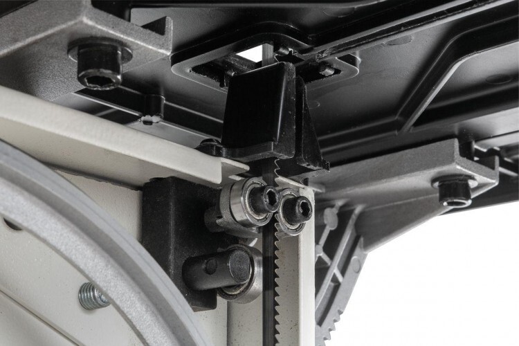 Важное достоинство JWBS-9SL – рычаг для быстрого натяжения и ослабления ленты, позволяющий оперативно переходить от состояния хранения к рабочему и обратно. Механизм имеет большой рабочий диапазон и нечувствителен даже к значительным неточностям длины полотна: инструкция допускает отклонения +/- 3 мм от штатных 1575 мм, но это значение указано «с запасом».