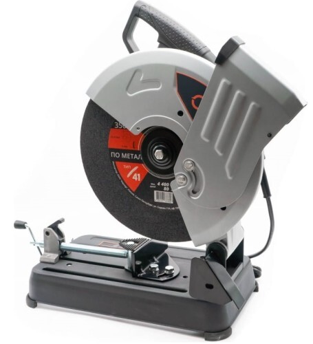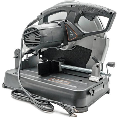 Отрезная пила по металлу с мощным двигателем. Инструмент оснащен направляющими пластинами для максимально точного пропила. Безопасность обеспечивается защитным кожухом.