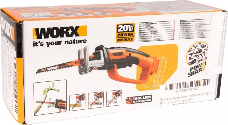 Аккумуляторная сабельная пила WORX WG894E.5 – это легкий и эффективный инструмент как для распила древесины и удаления сучьев, так и резки стали.