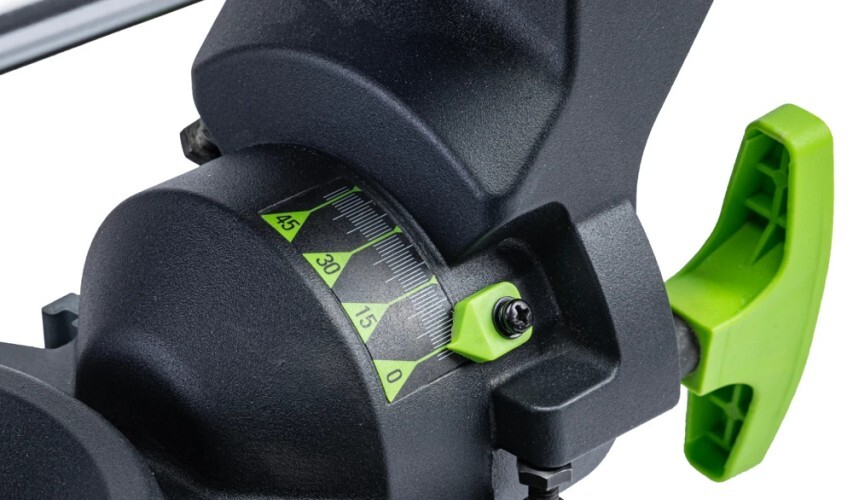 Удобная регулировка пильной части влево в диапазоне 0-47° с быстрой настройкой часто используемых углов.