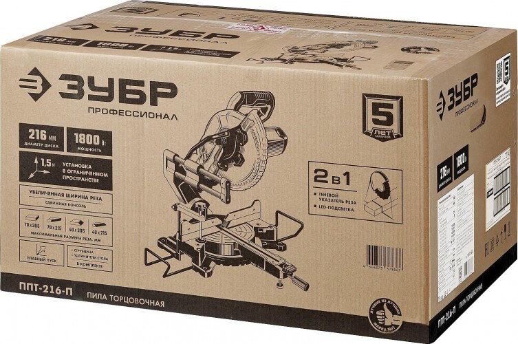 Пила торцовочная ЗУБР ППТ-216 предназначена для быстрой и точной распиловки древесины.