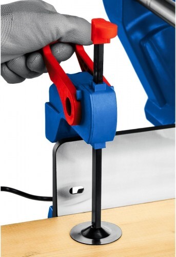 Фиксированные положения поворотного стола и удобная регулировка наклона облегчают установку угла пиления. Плавный пуск и электронный тормоз ликвидируют рывки инструмента и повышают срок службы двигателя. Эффективный пылеотвод способствует чистоте зоны резания