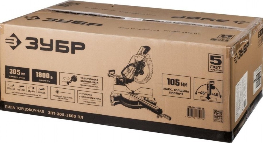 Пила торцовочная сетевая ЗУБР ЗПТ-305-1800 ПЛ применяется для прямого, косого, под наклоном и комбинированного пиления заготовок из древесины и ее производных (в том числе с пластиковыми покрытиями), а также тонкого алюминиевого профиля.