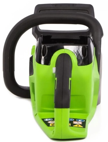 Пила цепная аккумуляторная G-MAX 40V GREENWORKS GD40CS18 - полупрофессиональная цепная пила, которая отлично подойдет для полноценного ведения дачного хозяйства. Ее надежный бесщеточный двигатель сопоставим по мощности с бензиновыми аналогами на 1,8 л/сил. При этом электродвигатель пилы GreenWorks абсолютно экологичен, имеет высокий крутящий момент (пилит быстрее бензинового аналога), имеет низкий уровень шума и вибраций, а так же прост в эксплуатации потому, что не требует подготовки масло-бензиновой смеси и какого-либо обслуживания. Включение пилы производится одной кнопкой.