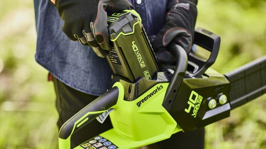 Пила оснащена шиной (40 см) из кремнистой стали и цепью производства компании Oregon. Масляный бачок для смазки цепи имеет прозрачный корпус, чтобы вы всегда могли следить за уровнем масла. Для безопасности предусмотрен предохранитель включения и тормоз цепи. Для долговечной работы двигатель имеет защиту от перегрузки. Пила работает от аккумуляторной батареи G-MAX 40V, которую можно использовать с другими устройствами линейки 40V (15+ устройств).