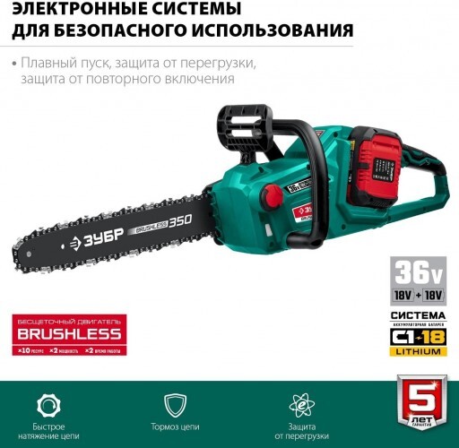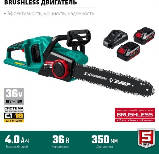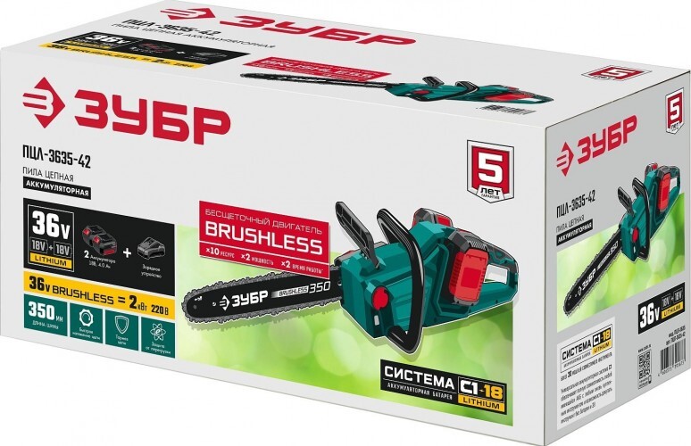 Пила цепная аккумуляторная ЗУБР ПЦЛ-3635-42 предназначена для валки деревьев, а так же пиления веток, обрезки сучьев, пиления деревянных балок, досок и т.п.