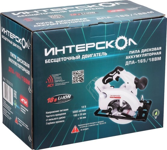 Пила циркулярная аккумуляторная ИНТЕРСКОЛ ДПА-165/18ВМ