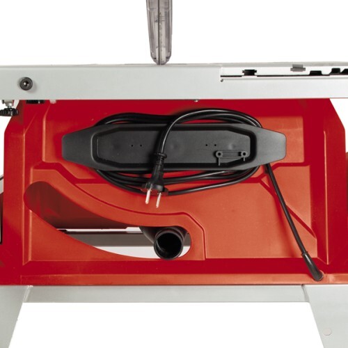 Пила стационарная Einhell TE-CC 250 UF укомплектована пильным диском с твердосплавными напайками, высококачественным алюминиевым столом с гладкой поверхностью для легкого и плавного скольжения заготовки и расширителями стола сзади и справа для широких заготовок. Также имеется интегрированная система скольжения. Пилу удобно хранить и переносить благодаря складываемой станине с колесами. Прочный параллельный упор с фиксаторами по краям обеспечивает высокую точность продольных пропилов. Двигатель имеет защиту от перегрузки и плавный пуск. Пила имеет адаптеры для подключения к системе удаления опилок на корпусе и на прозрачном защитном кожухе диска.