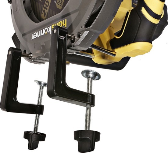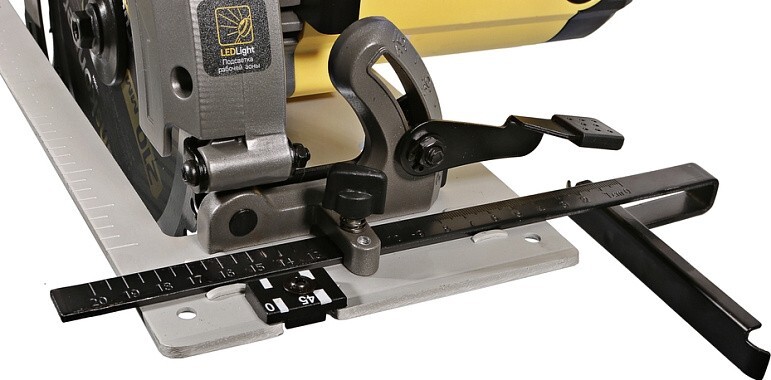 Удобно применять рычаг фиксации основания для настройки глубины и угла пиления в одно движение. Также в конструкции циркулярной пилы предусмотрена возможность стационарного использования. При плохом освещении выручает встроенная LED-подсветка.