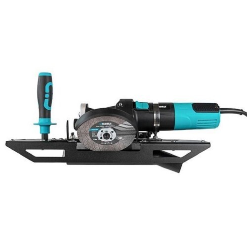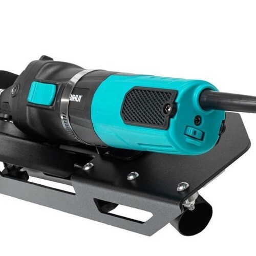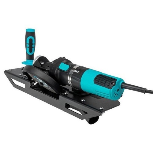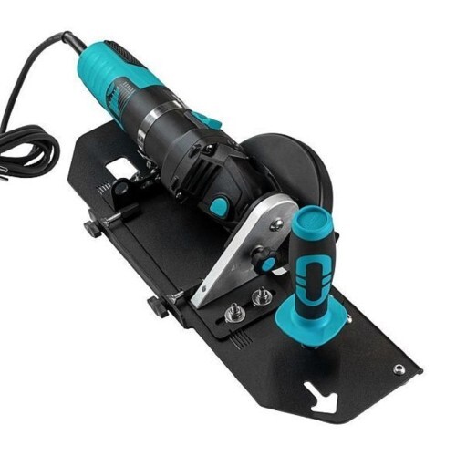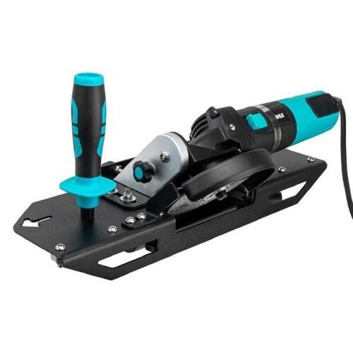 Режущий блок регулируется и наклоняется от 45° до 48°. В комплекте с заусовщиком идет предустановленная болгарка на 1200 Вт с возможностью регулировки оборотов от 3000 до 11000 об/мин.