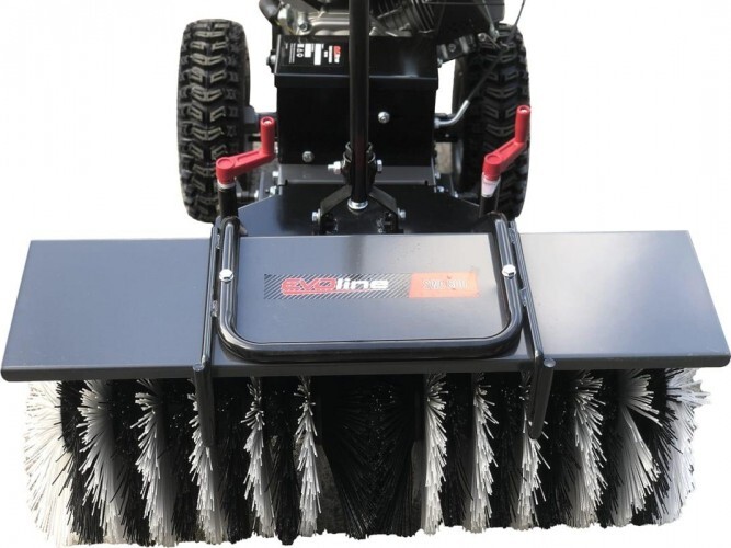 Максимальную производительность обеспечивает бензиновый двигатель Briggs & Stratton 950 Snow Series мощностью 6,5 л.с., который запускается с помощью ручного стартера. Щетки устанавливаются на подметальную машину EVOline SWG 800B без применения дополнительных инструментов, ширина очистки составляет 80 см. Крупные колеса с протекторным рисунком способствуют легкому продвижению машины по разным типам местности.