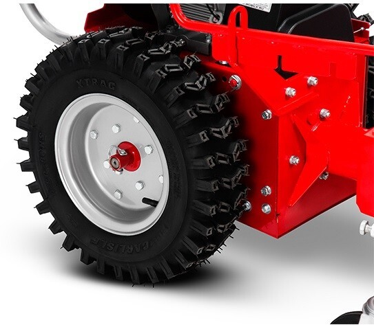 Каждое колесо X-TRAC имеет размер 42х12 см и выдерживает 200 кг нагрузки. Такие колеса превосходно подходят для подметальной машины при работе зимой, где требуется хорошее сцепление с со снегом и льдом, благодаря уникальному направленному и глубокому рисунку протектора. Диски на колесах являются стальными цельноштампованными. Колеса устанавливаются на подшипниках.