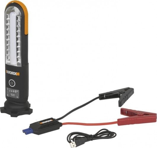 Пусковое устройство WORX WX852.1, LED-фонарь, предназначено для быстрого и безопасного запуска транспортного средства в сложных климатических условиях, в том числе с разряженным аккумулятором. Предназначено для запуска автомобиля с 12 В аккумулятором. Емкость пускового устройства - 12 000 mAh.