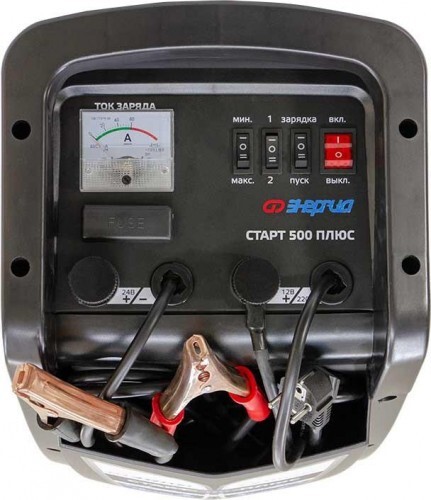 Трансформаторное пуско–зарядное устройство ЭНЕРГИЯ СТАРТ 500 ПЛЮС предназначено для эффективной зарядки всех типов свинцово-кислотных аккумуляторных батарей, а также для запуска двигателя. Пуско-зарядное устройство имеет несколько режимов зарядки батарей.
