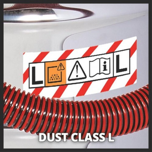 Вакуумный пылесос Einhell TE-VC 2350 SACL серии Expert является высококачественным универсальным многоцелевым пылесосом, оснащен инновационной системой очистки фильтра от мелкой пыли, которая эффективно справляется с грубой и ультра-мелким пылью, классом пыли L в соответствии с европейскими нормами (Опасная пыль с предельно допустимой концетрацией > 1 мг/м³). Вы можете использовать его для сухой и влажной уборки (засос жидкости), а также для работы вместе с электроинструментом Einhell. 2-полосная система для отработанного воздуха и охлаждения двигателя чистым воздухом снижает нагрузку на двигатель. Пылесос Einhell TE-VC 2350 SACL отлично очищает любую поверхность, кроме того, автоматически выключается при всасывании жидкости благодаря поплавковому выключателю. Поролоновый (вспененный) фильтр защищает двигатель от загрязнения при всасывании жидкости. Для удобной и чистой утилизации всасываемых жидкостей имеется сливная горловина с крышкой. Пылесос Einhell TE-VC 2350 SACL оснащен встроенной розеткой мощностью 1800 Вт (16А) для подключения электроинструмента с функцией автоматического включения, как только подключенный инструмент включен и отключение пылесоса с задержкой около 5 сек. после того, как инструмент выключен, так что пыль удаляется полностью. Подключив шланг к воздуходувному адаптеру, Вы можете очистить Ваши дорожки в саду от посторонних предметов, сдув их в сторону. Для удобства работы и мобильности есть ручка для переноски, а также рукоятка и два больших колеса для перевозки.