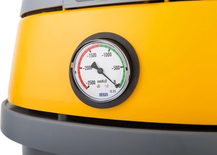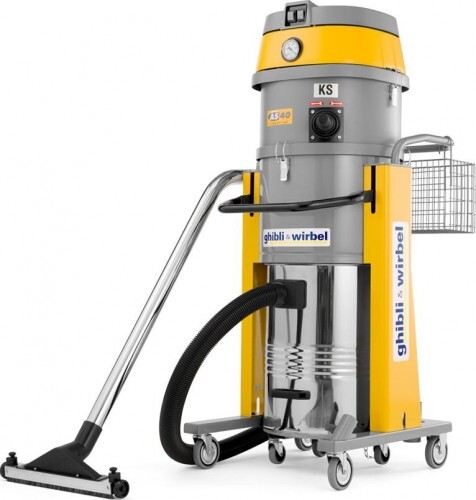 Модель оснащена тремя всасывающими турбинами и антистатической защитой. Фильтрующая система состоит из полиэстерового и картриджного фильтров. Механический встряхиватель фильтра с манометром контроля засорения. Съемный контейнер из нержавеющей стали для собранной пыли. Корзина для принадлежностей. AS 40 KS также доступны в классе фильтрации М.