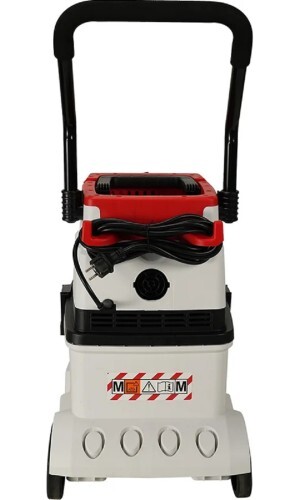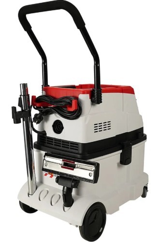 Корпус пылесоса изготовлен из ударопрочного пластика, который обладает высокой устойчивостью к коррозии и механическим повреждениям. Бак объемом 40 литров позволяет сократить количество технологических перерывов для его опорожнения.