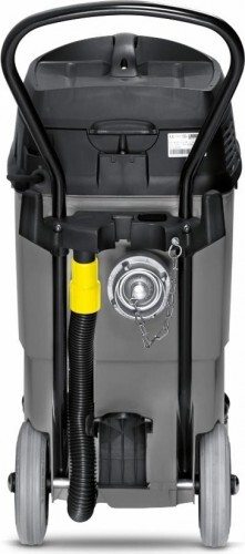 Одномоторный профессиональный пылесос влажной и сухой уборки NT 611 Mwf с мусоросборником объемом 55 литров. Данная модель специально разработана для нужд пожарных частей и служб МЧС. Ключевой особенностью модели является встроенный насос для сточных вод который откачивает большое количество жидкости из бака, обеспечивая возможность всасывать воду продолжительное время. Одной их наиболее важных деталей этого пылесоса является возможность подключения пожарного рукава непосредственно к корпусу аппарата. Плоский сетчатый фильтр, позволяет чередовать сбор влаги и сухую уборку, не прерывая работу. Доступ к фильтру производится быстро и просто. Плоский сетчатый фильтр увеличивает полезную емкость контейнера, поскольку он не углублен внутрь. Электронный контроль уровня автоматически отключает двигатель турбины при достижении максимального уровня жидкости. Для сбора мелкой сухой пыли может быть установлен плоский складчатый фильтр. Пылесос имеет два колеса большого диаметра сзади и два поворотных ролика спереди для лучшей устойчивости и маневренности, также небольшой вес, что облегчает транспортировку. Дополнительные удобства пользователю обеспечивают большой выключатель и держатель для кабеля и аксессуаров.