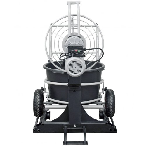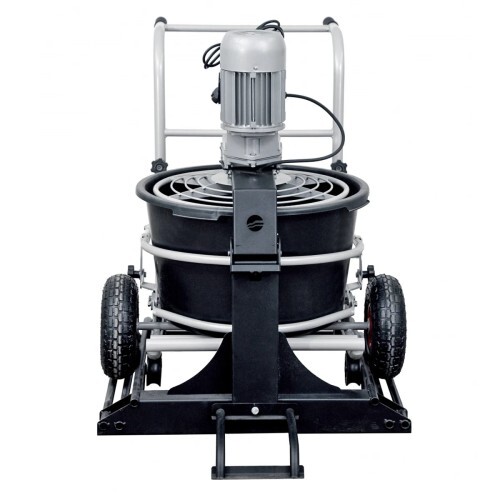 Миксер состоит из отдельной станции, тележки с пневматическими колёсами и ёмкости для смешивания.