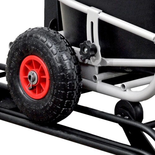 Благодаря пневматическим колёсам, тележку с ёмкостью легко перемещать по рабочей площадке