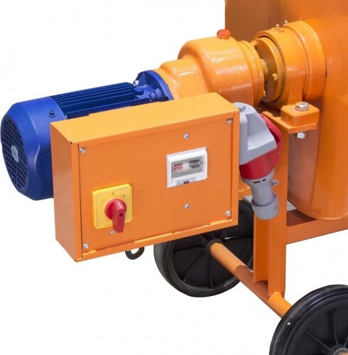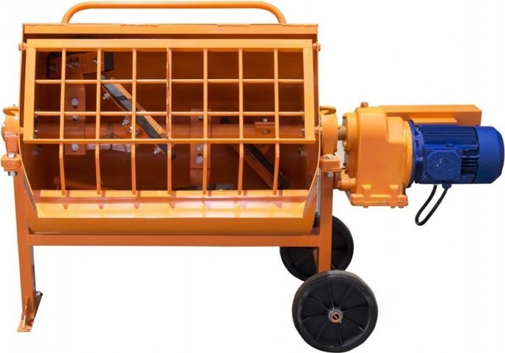РН 150 цикличные передвижные растворосмесители принудительного действия. Принцип их работы заключается в перемешивании компонентов с помощью четырех резиновых лопастей, находящихся на горизонтальном валу, расположенном внутри барабана. Использование этих машин позволяет повторять рабочий цикл сразу же после выгрузки полученного раствора.