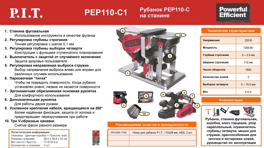 Один из самых мощных рубанков PIT - отличный помощник для вашей мастерской. Используйте рубанок PEP110-C1, чтобы обтесывать, строгать и подгонять необработанную древесину. Рубанок идет в комплекте со станиной, с помощью которой можно использовать инструмент в качестве рейсмуса. Также рубанок подойдет для выбора четверти, снятия фасок. Мощный и производительный инструмент для дома, хобби или работы.