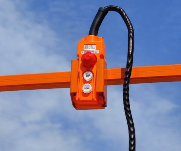 Электрическая схема подъемника позволяет использовать для работы сеть 220В. Зарядка аккумуляторов происходит не через отдельное устройство, как у большинства подъемников, а выполняется посредством эл. цепи встроенной в общую систему. Таким образом привод подъемника может питаться от сети и от блока аккумуляторных батарей. Это является большим преимуществом для завершения работ при разряженных аккумуляторах.