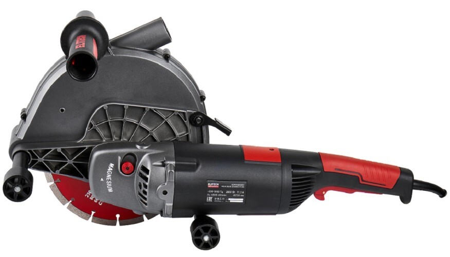 Бороздодел с электродвигателем мощностью 2600 Вт, с плавным пуском и диском диаметром 230х22,4 мм, предназначен для прорезания технологических борозд и штробления в бетоне под укладку различных коммуникаций - проводов, труб и т.п.