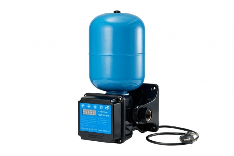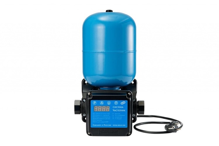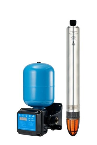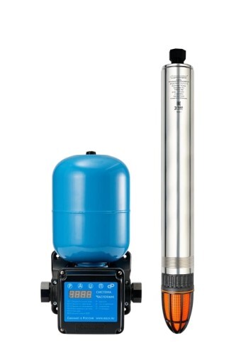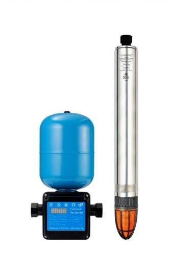Система автоматического водоснабжения «ВОДОМЕТ» 55/75-Ч с частотным регулированием предназначена для бесперебойного водоснабжения в автоматическом режиме коттеджей, дач и ферм. Главное преимущество системы — поддержание постоянного заданного давления в водопроводной сети независимо от количества одновременно работающих точек водоразбора. В системе установлен насос, который обладает максимальным расходом 55 литров в минуту и максимальным напором 75 метров. Он способен перекачивать воду с содержанием песка во взвешенном состоянии до 2 килограмм на кубический метр воды. Электродвигатель насоса надежно защищен от перегрева потоком омывающей воды, что позволяет насосу работать не полностью погруженным в воду. Пульт управления насосом «ВОДОМЕТ» 55/75-Ч, является микропроцессорным пультом управления, оснащенным цифровым дисплеями и клавиатурой, позволяющими программировать режим работы насоса и просматривать значения давления в водопроводной сети, потребляемого тока, коэффициента загрузки электродвигателя и информацию о возникающих ошибках. Он обеспечивает насосу комфортные условия работы, так как служит для: плавного пуска и плавной остановки насоса, поддержания заданного диапазона давления в водопроводной сети, защиты насоса от «сухого хода», перегрузок и скачков напряжения. Пульт управления в своем составе имеет гидроаккумулятор, который служит для аккумулирования воды под давлением и сглаживания колебаний напора в сети.