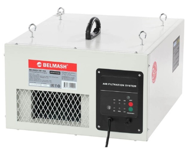 Система фильтрации BELMASH AF-765 предназначена для очистки воздуха в производственных помещениях (столярных мастерских и т.п.) объемом до 140 м. куб.