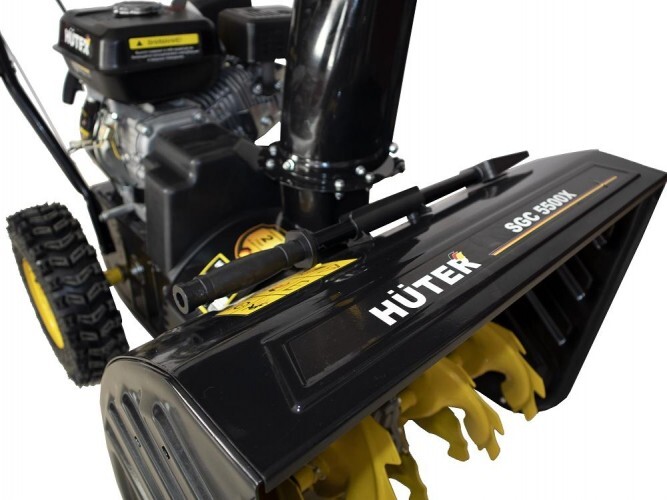 Снегоуборочная машина HUTER SGC 5500Х предназначена для расчистки небольших территорий от снега. Ширина захвата за один проход составляет 62 см. Шнек с зубцами измельчает плотный снег. Благодаря глубокому протектору колеса не скользят при гололеде, обеспечивая хорошую проходимость машины.