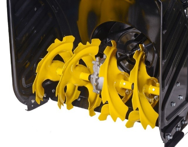 Снегоуборщик Huter SGC 7,0 оборудован четырехтактным двигателем мощностью 7.0 л.с. Ширина обработки за один проход составляет 56 сантиметров. Рычаг регулировки скорости, рычаг, регулирующий направление и дальность выброса, вынесены на панель оператора. Металлический шнек может измельчать плотный или мокрый снег. Для электростартера необходим аккумулятор 12 В, 10 А*ч.