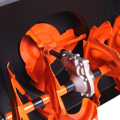 Возможность управления одной рукой позволяет отрегулировать дальность выброса, не останавливая снегоуборщик.