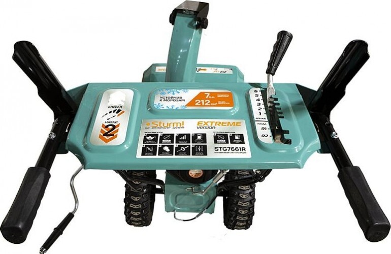 Бензиновый снегоуборщик Sturm! STG7661R - это самоходная двухступенчатая снегоуборочная машина, оснащена зимним вариантом надежного четырехтактного бензинового двигателя модели 170F. Система управления двигателем обеспечивает его работу в оптимальном диапазоне максимального крутящего момента, что даёт хорошую энерговооружённость для выполнения тяжёлых работ.