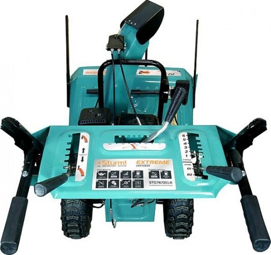 Бензиновый снегоуборщик Sturm! STG7672ELR — это самоходная двухступенчатая снегоуборочная машина, оснащенная зимним вариантом надежного четырехтактного бензинового двигателя модели 170F. Система управления двигателем обеспечивает его работу в оптимальном диапазоне максимального крутящего момента, что даёт хорошую энерговооружённость для выполнения тяжёлых работ.