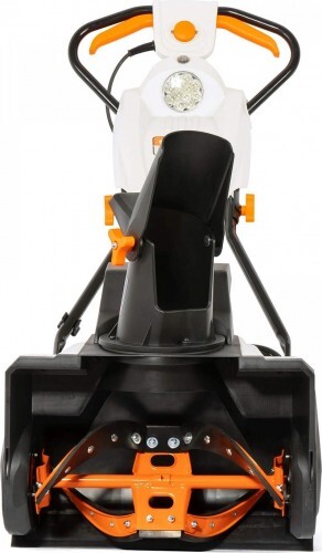 Яркая LED фара обеспечивает освещение рабочей зоны перед снегоуборщиком, помогая работать в темное время суток.