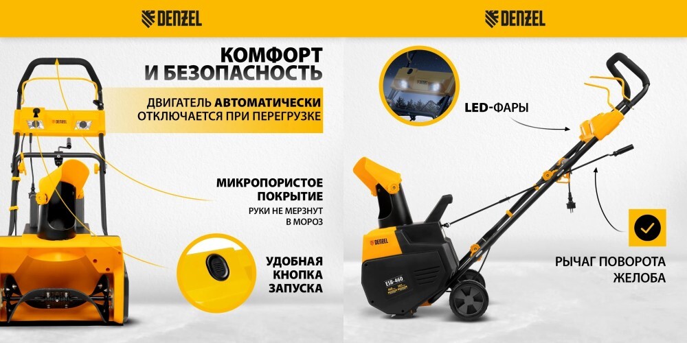 Электрическая снегоуборочная машина Denzel ESB-460 предназначена для уборки легкого снега на ровных поверхностях: площадках, парковках, дорожках, тротуарах. Проста в управлении, не требует сложного технического обслуживания. Машина пригодится для уборки придомовой территории и загородного участка.