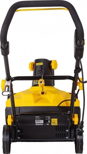 Разбираться в управлении не придется – вы просто толкаете его перед собой, как механическую газонокосилку. Для передвижения не требуется особых усилий, т.к. аппарат поставлен на колеса, которые позволяют ему легко маневрировать. Вся регулировка поворота желоба и выброса осуществляется с панели опера