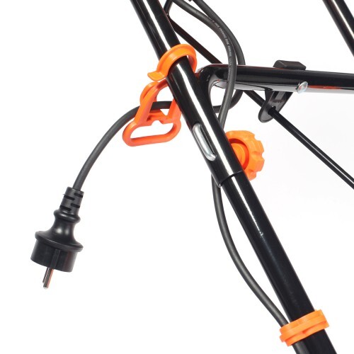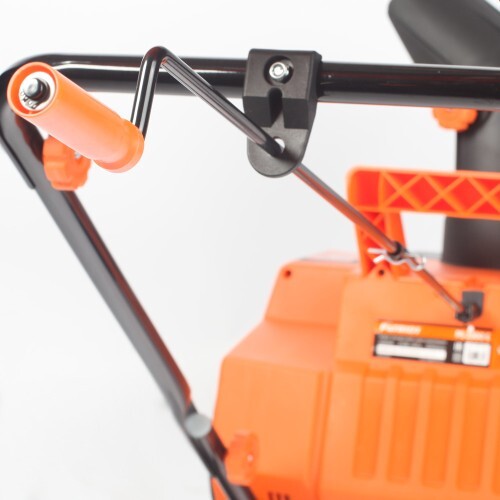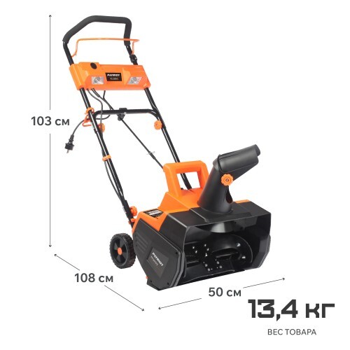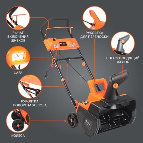 Мощный электрический снегоуборщик, с большой шириной захвата, предназначен для уборки свежевыпавшего снега, укомплектован двумя светодиодными фарами для работы в темное время суток.