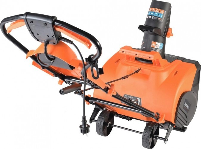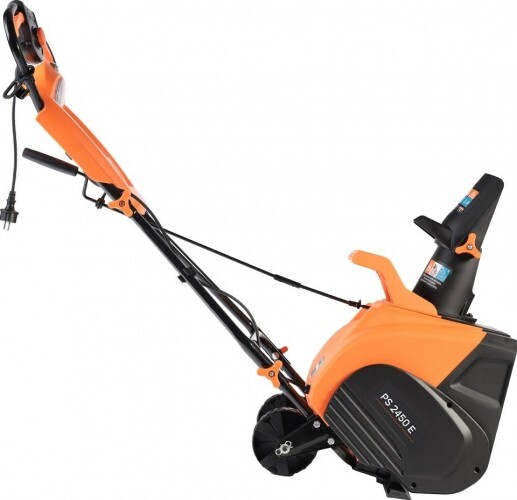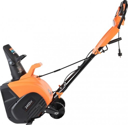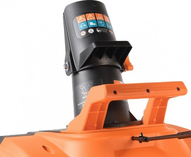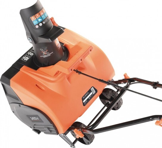 Мощный электрический снегоуборщик с большой шириной захвата, предназначен для уборки свежевыпавшего снега, укомплектован светодиодной фарой для работы в темное время суток.