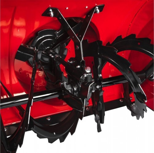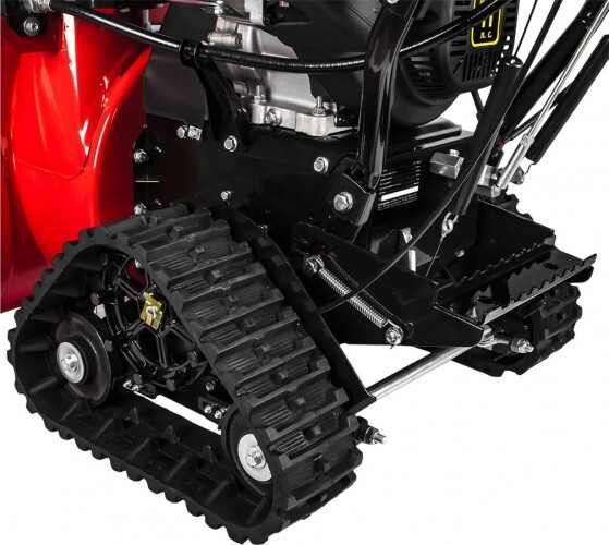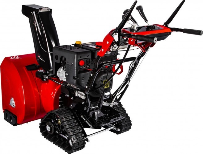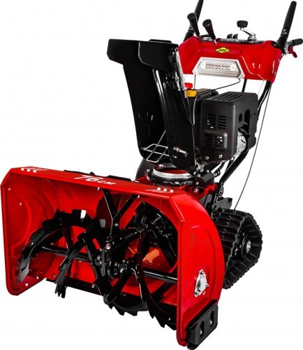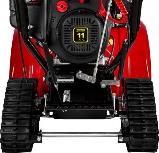 Рекомендован для уборки снега на участке площадью до 800 м/кв. Предназначен для работы на сложном рельефе, на льду. Повышенная проходимость за счет специализированных треугольных гусениц. Оснащен специальным двигателем для зимнего использования. Гусеницы позволяют легко перемещаться по склонам и обледенелой земле. Силовой агрегат машины можно запустить двумя способами: с ручного стартера или с электростартера. Регулировка выброса снега желобом осуществляется дистанционно - с панели оператора. Диапазон поворота разгрузочного желоба - 190 градусов. Снегоуборщик оборудован фарой - можно работать в непогоду или в темное время суток.