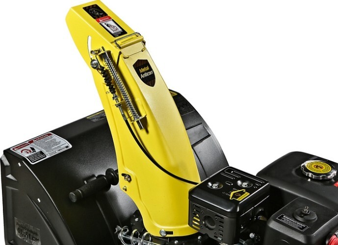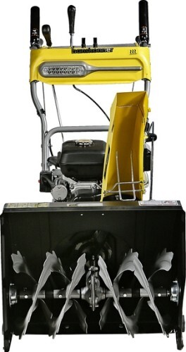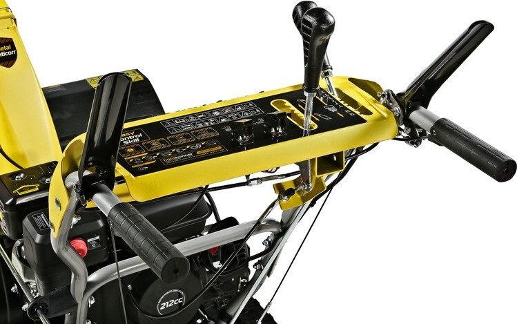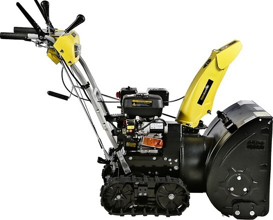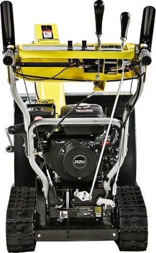 Модель оснащена надежным четырехтактным двигателем рабочим объемом 212 см3, мощностью 7л.с., предназначенным для интенсивной зимней эксплуатации, а также многоступенчатой трансмиссией, с шестью скоростями движения вперед и двумя назад. Низшие передачи применяются при уборке плотно слежавшегося и мокрого снега, средние передачи - для работы со свежевыпавшим снегом, высшая передача - транспортный режим, предназначенный преимущественно для перемещения снегоуборщика.