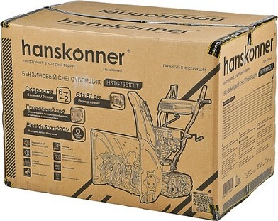 Hanskonner HSTG7661ELT - мощный и производительный самоходный бензиновый снегоуборщик с максимальным уровнем оснащения. Предназначен для расчистки территорий средней и большой площади от снега различной плотности, как свежевыпавшего, так и слежавшегося.