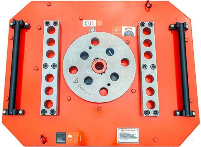 - Заготовка из арматуры формируется при вращении планшайбы, за процесс вращения отвечают электродвигатель и редуктор станка. Чтобы получить нужный радиус и форму заготовки, используют обкатные ролики и пальцы. Угол изгиба задается на многофункциональной панели управления.