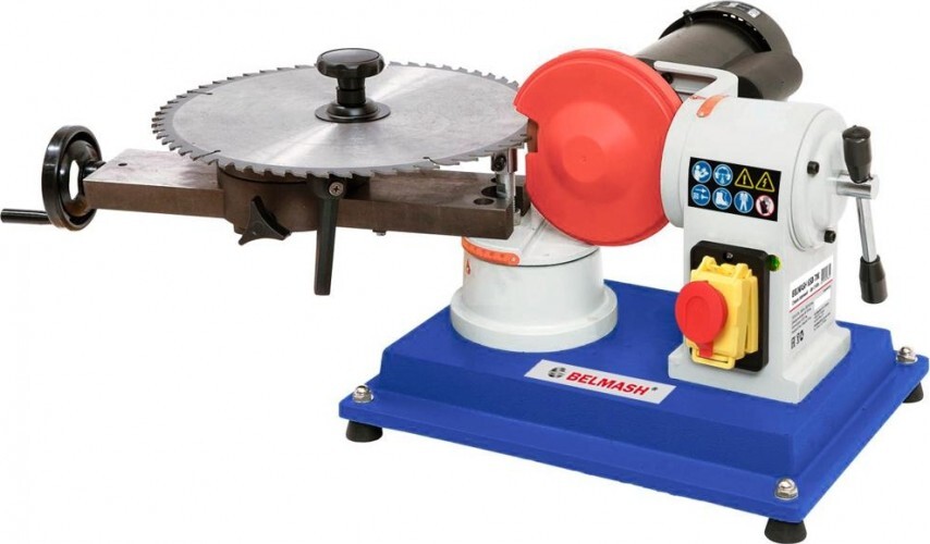 Станок предназначен для затачивания передних и задних углов зубьев пильных дисков из быстрорежущей стали и с твёрдосплавными напайками при помощи вращающегося абразивного диска. Однофазный асинхронный двигатель мощностью 350 Вт позволяет алмазному кругу диаметром 125 мм достигать частоты вращения на холостом ходу 2850 об/мин.