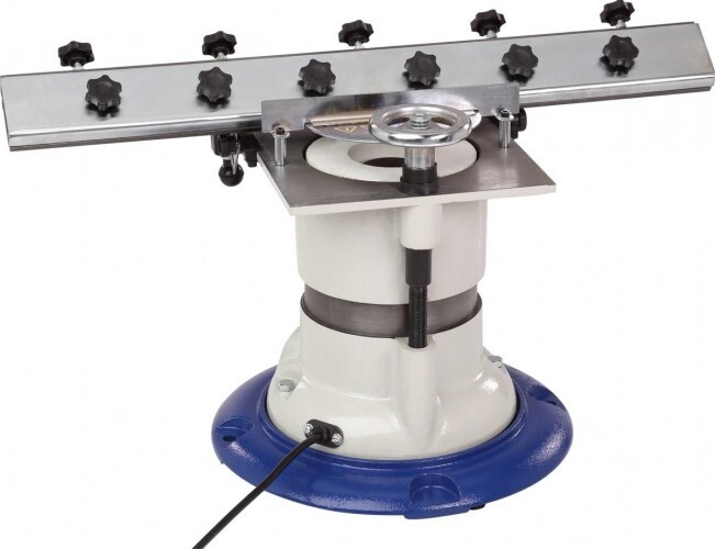 Станок имеет накладное чугунное основание диаметром 332 мм, использование которого позволяет сделать станок устойчивым, особенно при работе с большим зажимным блоком. Следует учитывать при размещении оборудования: при работе с использованием большого блока, его ход составляет около 0,75 м или около 1,5 м от правого до левого края блока. На накладном основании и корпусе станка имеются виброгасящие ножки и отверстия для крепления к верстаку. Диаметр опорной части корпуса станка без накладного основания составляет 230 мм.