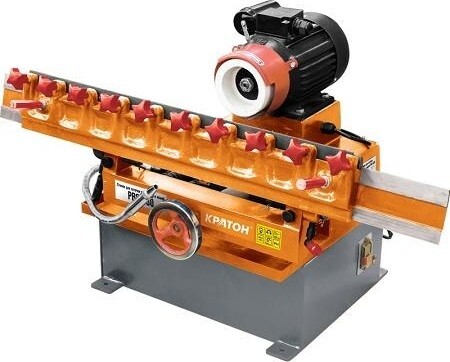 Станок относится к типу заточных металлообрабатывающих шлифовальных станков и предназначен для затачивания плоских ножей с прямолинейной режущей кромкой (используемых для фрезерования древесины). Плоские ножи с прямолинейной режущей кромкой для фрезерования древесины, применяются для сборных фрез и ножевых валов фрезерных, строгальных, фуговальных, рейсмусовых и специализированных станков. Надежный асинхронный двигатель для длительной работы. Предусмотрена принудительная подача охлаждающей жидкости. Регулируемый угол заточки ножей. Литое, прочное основание для устойчивости станка.