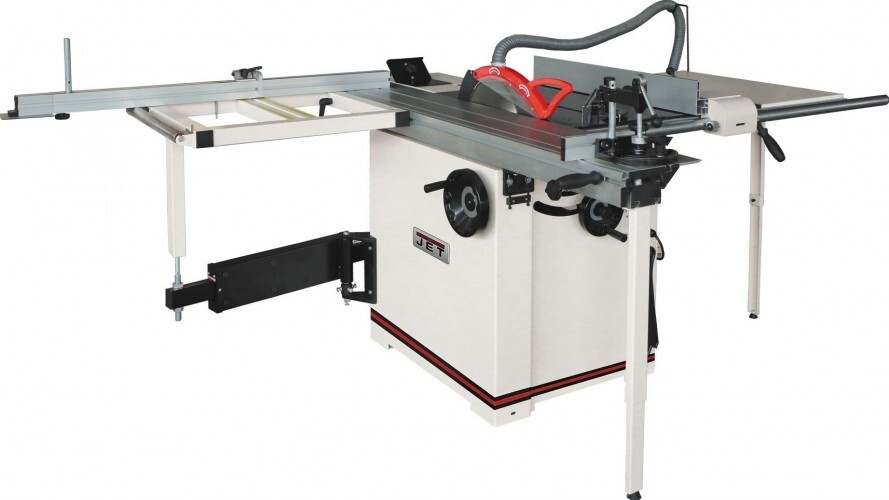 Jet JTSS-1600 форматно-раскроечный станок профессионального класса для работы с древесиной и ламинированными материалами на её основе. Важная особенность данной модели в том, что уже с завода она укомплектована большинством вспомогательных узлов, которые обычно приходится докупать. Рабочий стол выполнен из чугунного литья, его можно расширить одной или двумя секциями. Первым ставится чугунный расширитель, к нему можно пристыковывать сегмент из стального листа, оборудованный опорой. Такая база позволяет распиливать детали с отступом 1220 мм от параллельного упора. Сам упор выполнен по классической для профессиональных станков схеме: крепится к массивному чугунному основанию, которое перемещается по цилиндрической направляющей и фиксируется эксцентриковым стопором.