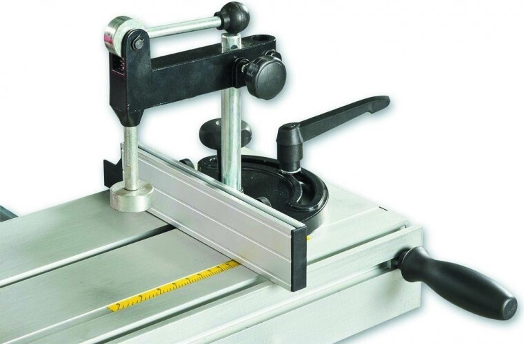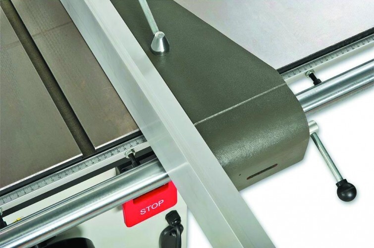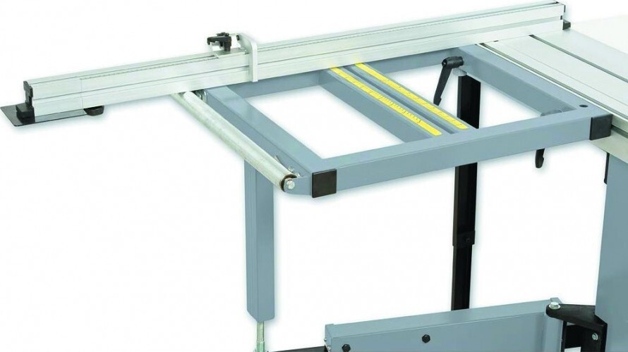 Станок оборудован подвижным столом (кареткой), ход которого составляет 1600 мм. При работе на нем деталь фиксируют при помощи углового упора, эксцентрикового прижима или продольного упора. В стандартный комплект входит и расширение подвижного стола с телескопической опорой и раздвижным поворотным упором заготовки. В разложенном состоянии его длина составляет 2200 мм, в сложенном 1200 мм.