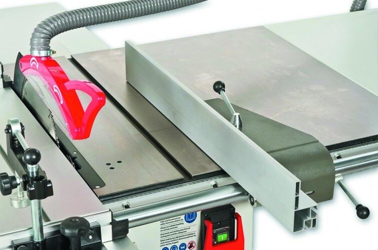 В остальном конструкция и функциональное оснащение станка полностью соответствуют принятым стандартам класса: предусмотрен подрезной диск с приводом от основного двигателя, есть регулировка наклона и высоты установки пильного модуля. Возможно подключение к системе удаления опилок с отсосом как из нижней полости, так и от верхнего кожуха диска.